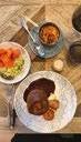 5. Place on a plate with some rocket and seasonal leaves. Toast (grilled sourdough) and celeriac remoulade.