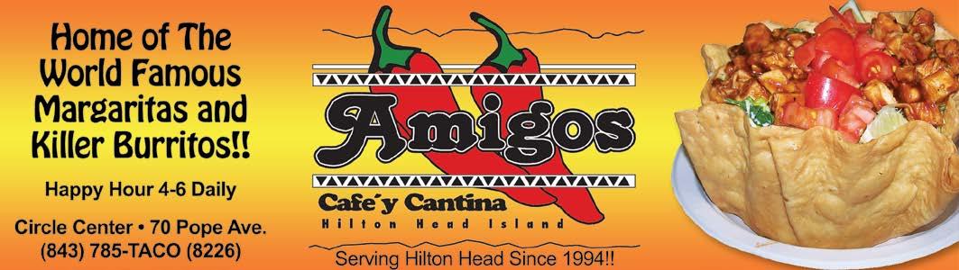 Steak Fajita Burrito ~ Tasty pieces of grilled steak with peppers, onions, rice, black beans, sour cream, cilantro, tomatoes and cheese ...........................................................................................12.95 Chicken Fajita Burrito ~ Charbroiled chicken, sauteed with peppers, onions, rice, black beans, sour cream, cilantro, tomatoes and cheese....................................................................................12.95 Pollo Asado ~ Skinless chicken breast, grilled with cilantro, and sour cream, rice, black beans and cheese..................................12.50 w/ BBQ sauce...............................................................................12.95 Carnitas ~ Amigo’s famous pork carnitas with rice, black beans, sour cream, cilantro, cheese and guacamole .............................12.75 Carne Asada ~ Charbroiled marinated pieces of steak with rice, black beans, sour cream, cilantro and cheese............................12.75 Veggie ~ This will turn you into a vegetarian. Bell peppers, mushrooms, zucchini, onions, rice, black beans, sour cream, cilantro, tomatoes and cheese .....................................................12.75 Fish ~ Battered fried fish with cabbage, rice, black beans, pico de gallo, hot sauce, cilantro and cheese. ...........................12.95 Low Country Oyster ~ Amigo’s is the home of the original oyster burrito. Battered fried select oysters with cabbage, hot sauce, pico de gallo, rice, black beans, cilantro and cheese .........................13.95