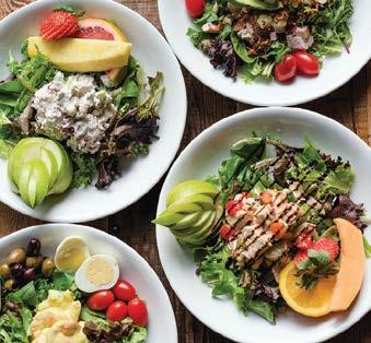 SOUTHWESTERN grilled cajun dusted chicken breast, fresh corn, black beans, romaine, red onions, grape tomatoes, jack and cheddar cheese, tortilla chips, southwestern dressing 19 TUNA NAPA fresh tuna grilled to medium rare, napa cabbage, toasted almonds, crunchy oriental noodles, toasted sesame seeds, sesame ginger dressing 25 CHOPPED grilled chicken breast, romaine, crispy bacon, jack and cheddar cheese, grape tomatoes, chopped egg, avocado (seasonal), red onion, honey mustard dressing 20