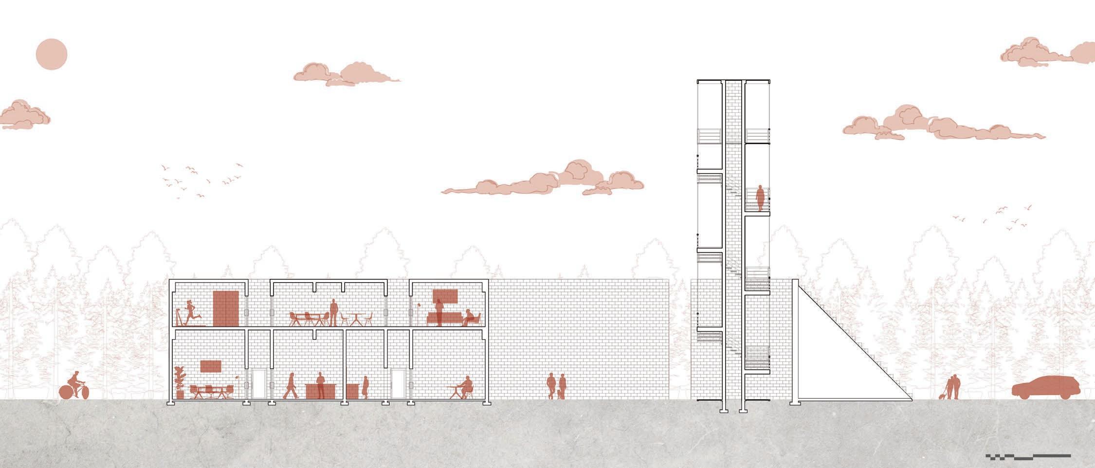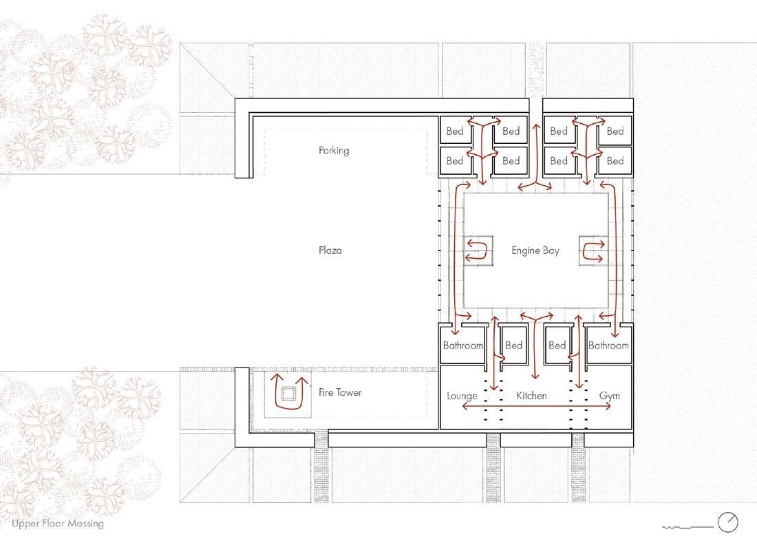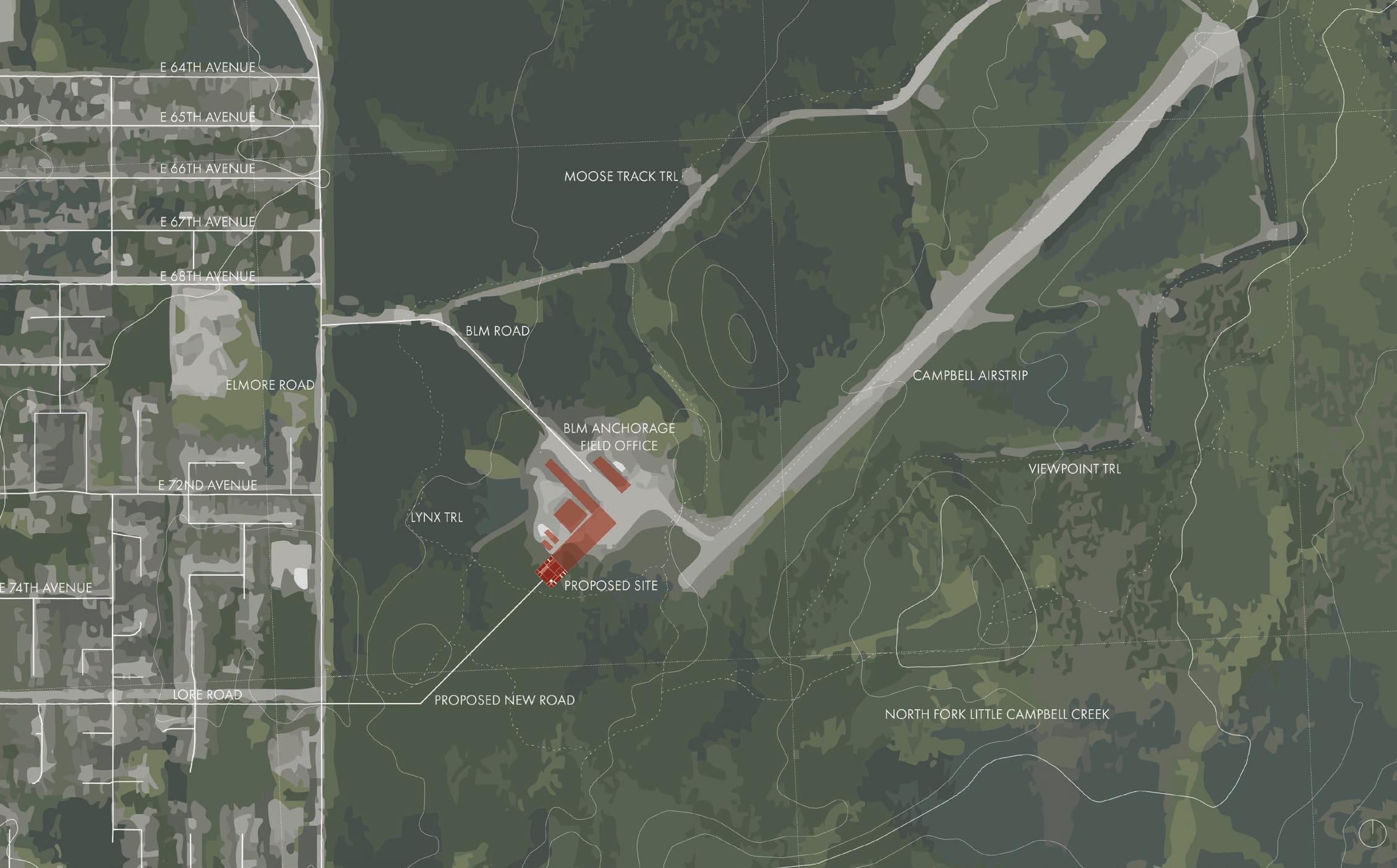 The station is strategically located near the Campbell airstrip - an outdoor recreational park directly adjacent to the city - to provide optimized operational efficiency for ground crews and airborne fire brigades as well as ample space for community gatherings, education, outreach, and events. The location gives the station direct access to the airstrip and major roads/trailheads, enabling rapid response to a diverse range of emergencies like trail search and rescue, urban medical response, and house and forest fires. A tower rises in contrast to the embedded station, acting as a training tool, lookout point, and civic landmark. The design integrates functional resilience and cultural expression to create a beacon for first responders serving the communities they protect.
