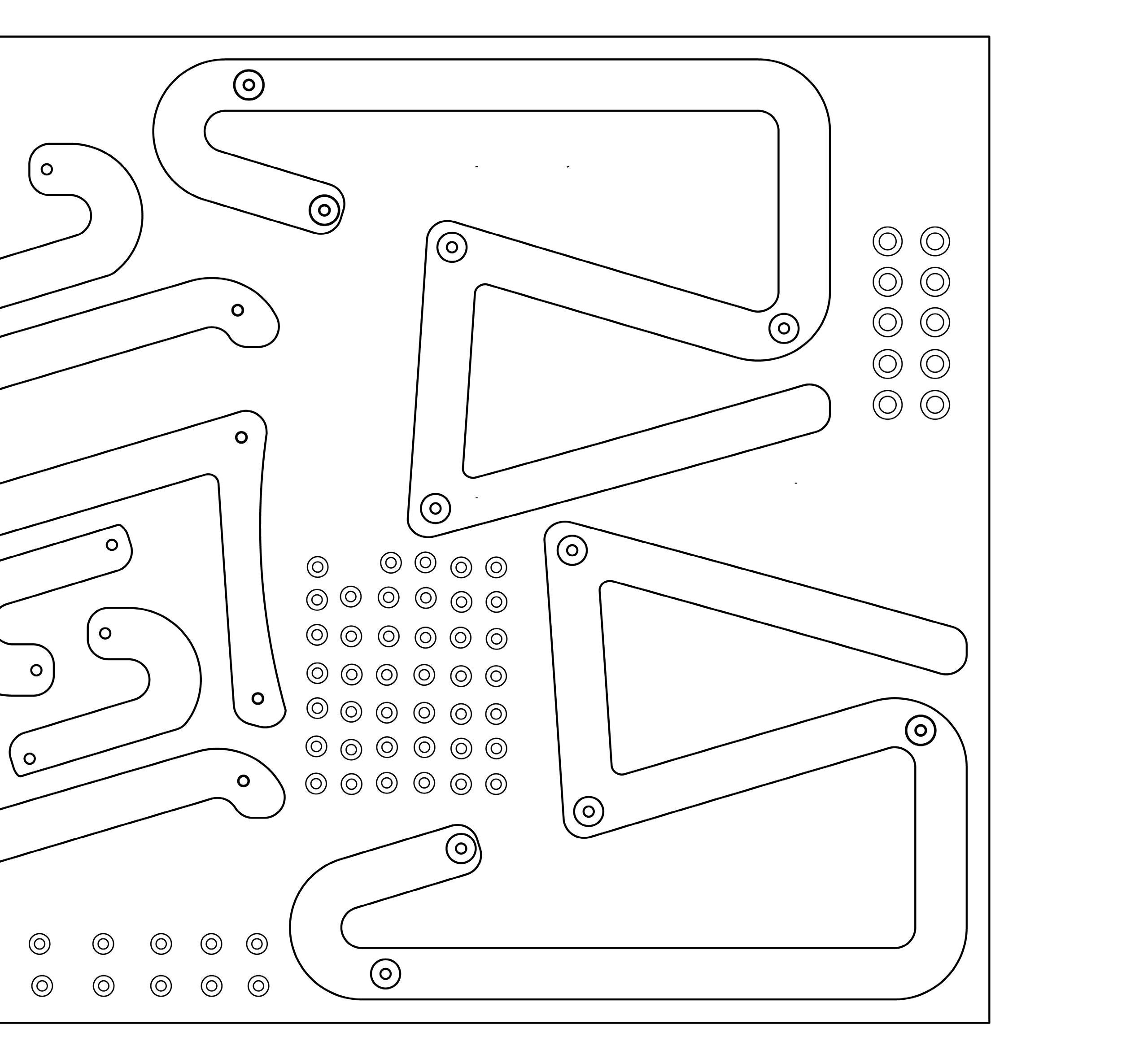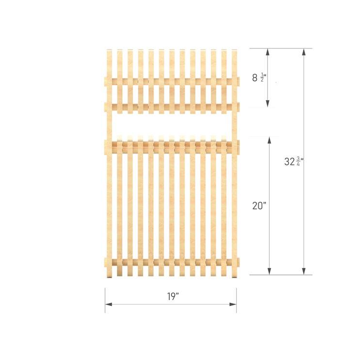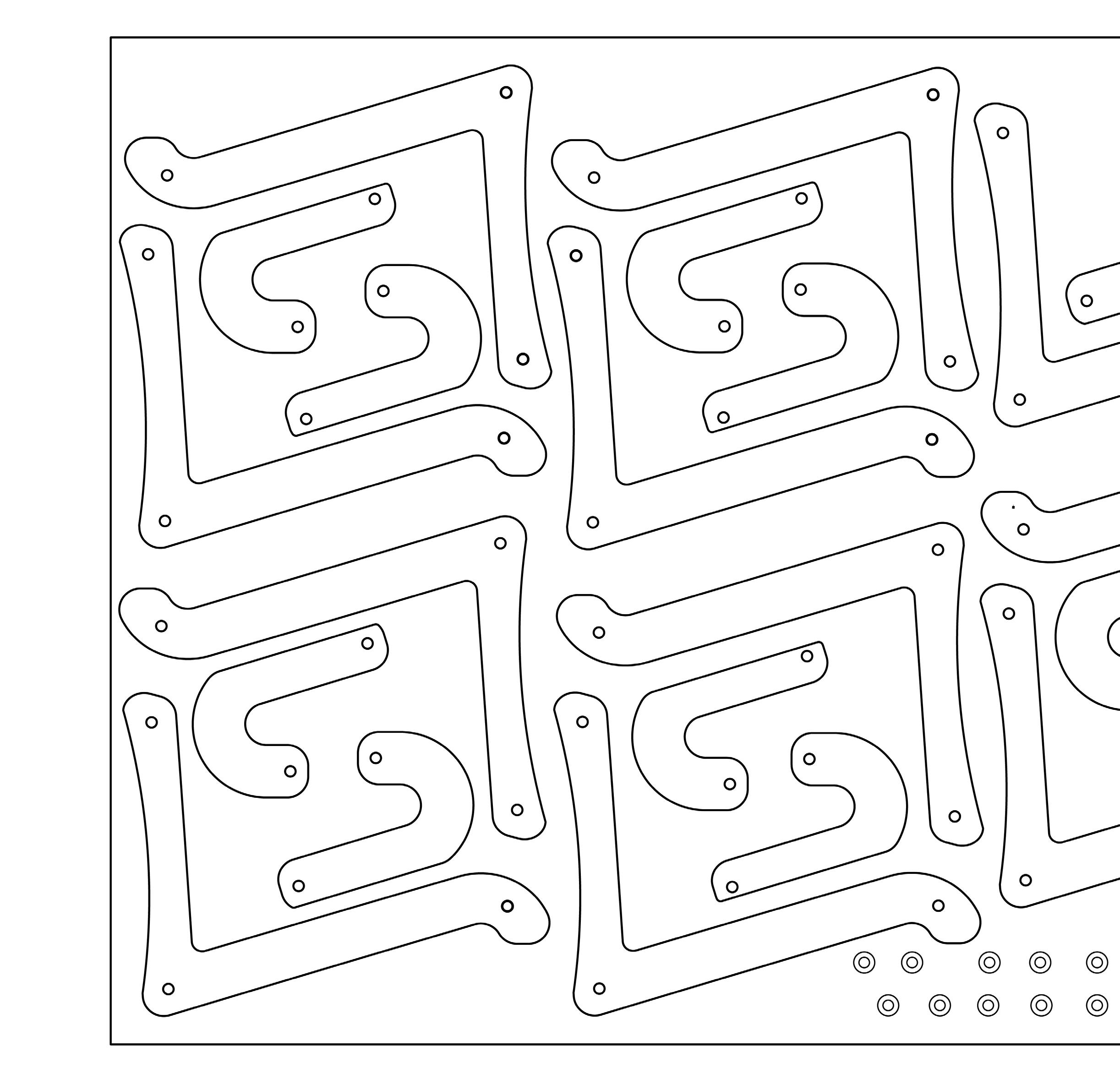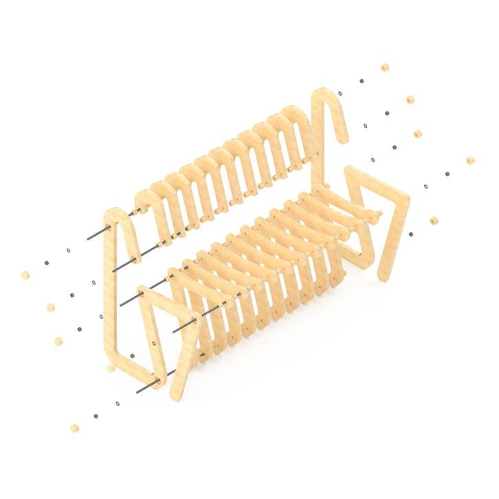 An assembly consisting of slatted wooden ribs allows for efficient interlocking layouts on the 4’x8’ sheet for milling and a sturdy material configuration. This assembly system celebrates the possibilities of using standardized parts and efficient fabrication techniques. The slats are separated by spacers and secured along threaded rods.