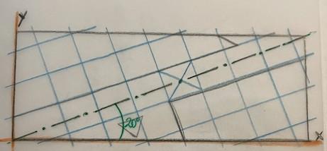 Composición ortogonal fragmentada con su diagonal en 20° que dirige la modulación en cuadricula.