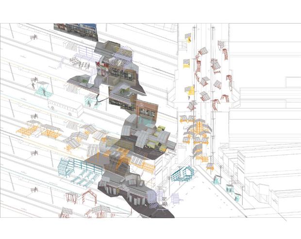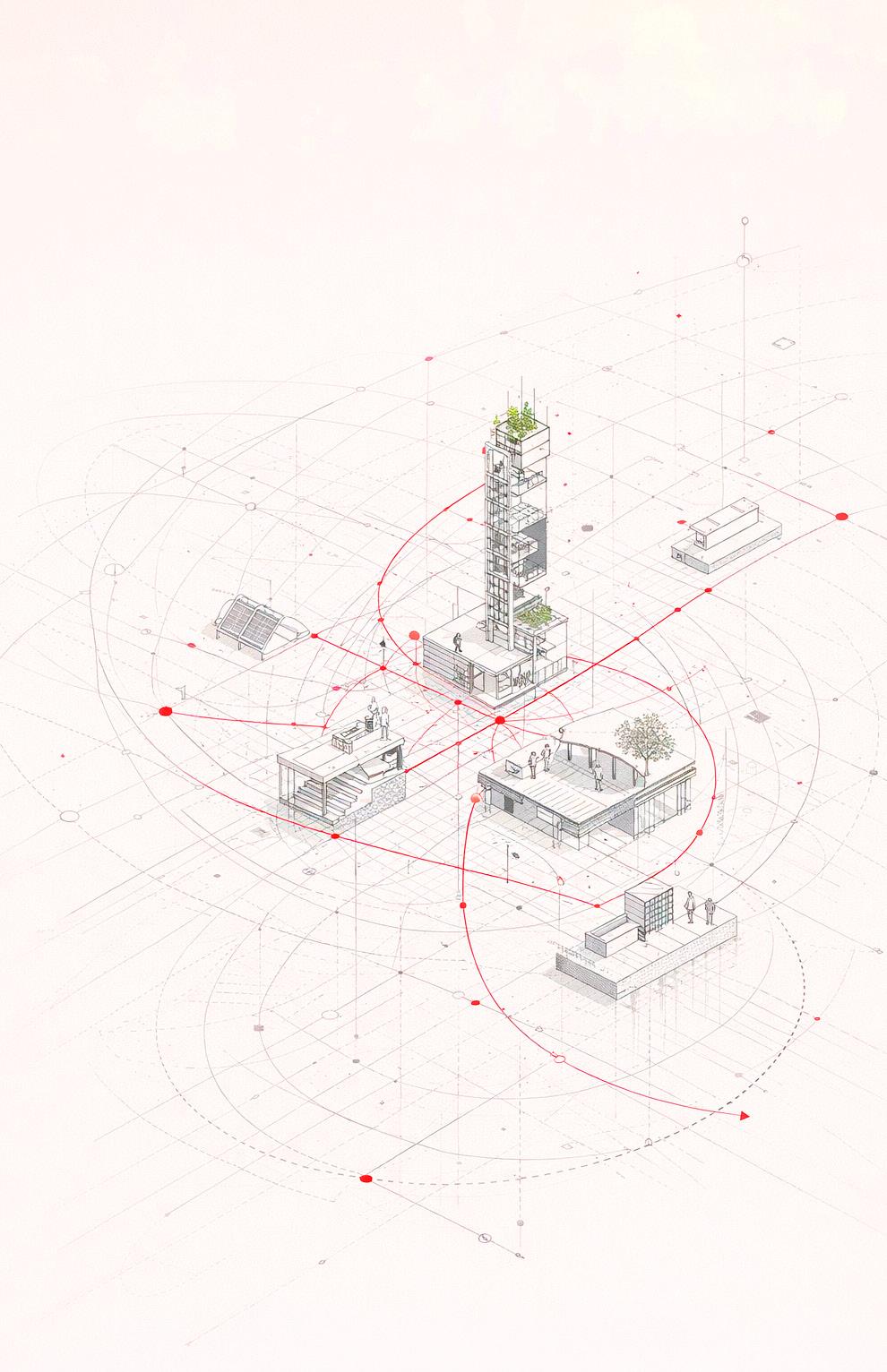 The speculative project explores a clustering and docking logic that follows a part-to-part aggregation and bottom-up growth logic that draws on natural compound reactions. The growth/aggregation process will follow a set of rules that act like “genetic codes,” allowing the whole system to expand, grow, decay, reform, renew, and replace like a “living” thing. What this project is proposing is not a static object dominated by overall form, but a dynamic life system driven by local interactions and metabolic processes (water, energy, material, and waste cycles). It is a prototype that is designed to transform, grow, and evolve in the future; the proposed architectural blueprints are merely the first-generation genes.