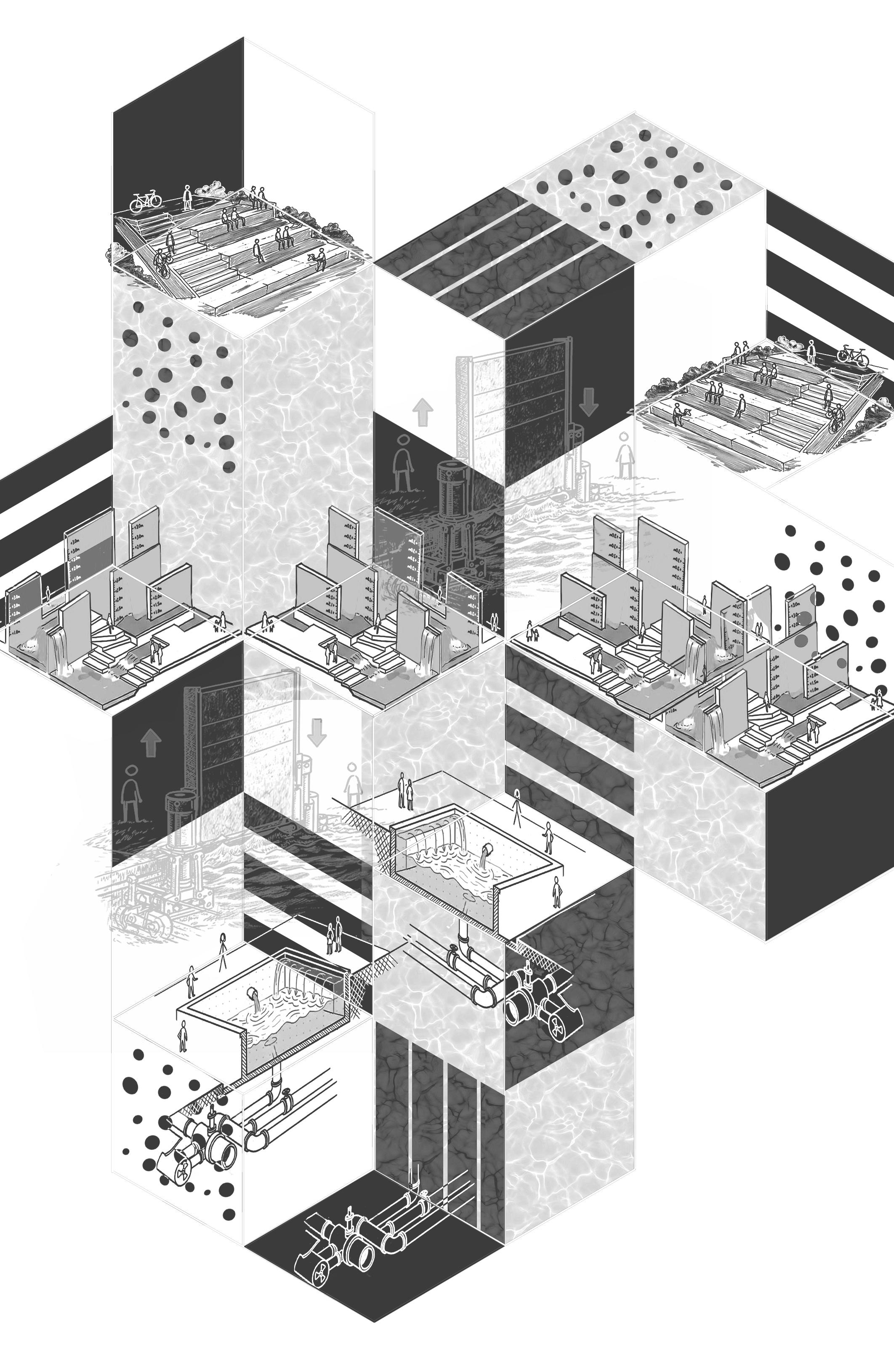 Together, these landscape and architectural interventions form a decentralized system of heat resilience, transforming suburban floodplains into adaptive public infrastructure for a warming climate.