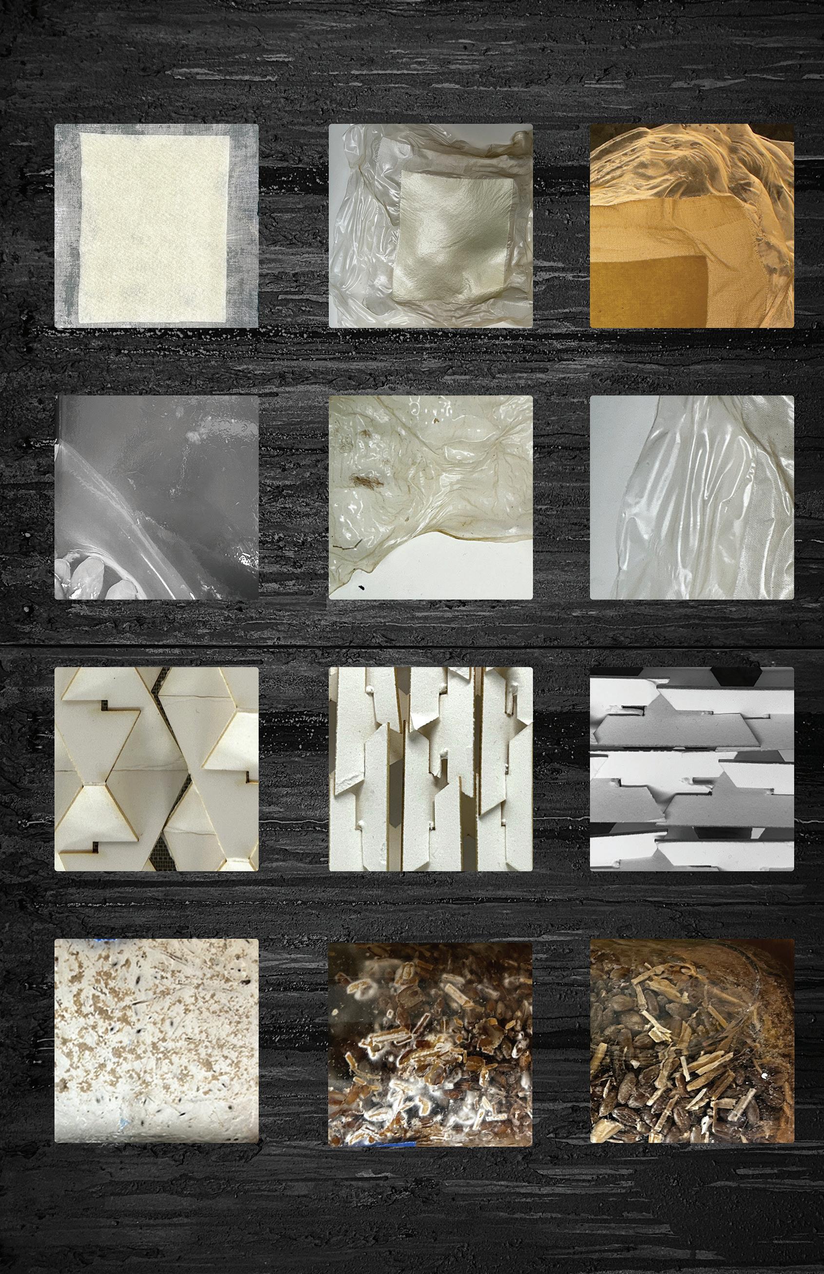 The project then translates these observations into architectural speculation. Rather than proposing biomaterials as structural replacements, the research examines their potential roles as architectural skins, interior surfaces, membranes, and replaceable layers: positions within buildings where transformation and decay may be accommodated rather than resisted.