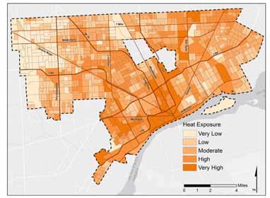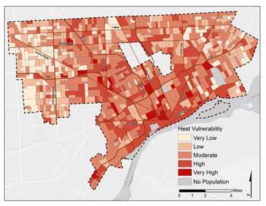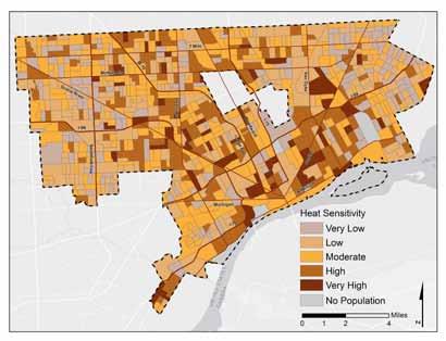 Our vulnerability assessments focus on two issues: extreme heat and fooding. We selected these two issues because local climatologists have identifed extreme heat and increased precipitation as key concerns for Detroit.