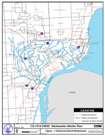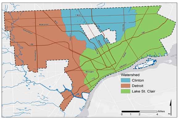 Sewer District: Sewer drainage areas defned as the city developed, ith no formal legal boundaries. Boundaries are determined in order to minimize the number of info points into the DWSD collection system. (Source: DWSD Wastewater Master Plan)