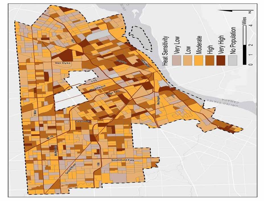 Figure 8: Detroit Sensitivity to Excessive Heat by Block Group 2010