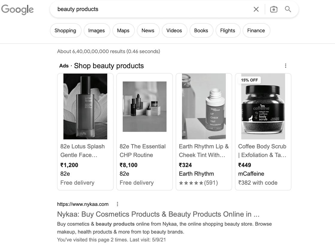 Search Engine Optimization: SEO is the most important marketing strategy which is used by most of the digital marketers to reach their customers through search-related keywords on Google or Yahoo or similar search engines. Therefore, in the case of SEO, the name of the brand usually pops up on the topmost search result and this will ensure that the customer will be able to see the brand and its advertisement first, before any other search result on such websites. However, it shall be noted that Search Engine Optimization is not the primary strategy in digital marketing that is followed by marketers and this is because social media, as well as other similar marketing strategies, are considered the primary digital marketing strategies utilised by digital marketers extensively. As represented in Figure 1.5, Nykaa has employed a comprehensive search engine optimization strategy to ensure that its website is easily found by potential customers. This includes optimizing website content for relevant keywords, creating backlinks and thus increasing and improving the website speed and usability. SEO helps various platforms as Nykaa to rank higher in search engine results page and reach more potential customers.