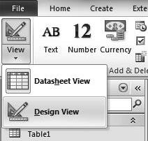 MS Access 2010 by default provides with a table in the object list. To customize/ design the default table as per your schema: Right click on the table and select Design View Or