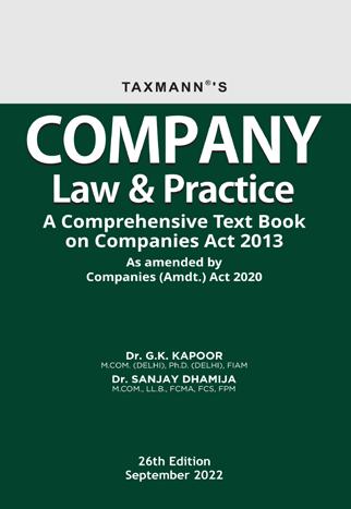 Company Law & Practice is a comprehensive & authentic textbook on the Companies Act 2013 as amended by the Companies (Amendment) Act 2020. This book aims to represent an impressive and judicious blending of the provisions of the Companies Act, Judicial Decisions, Clarifications issued by SEBI, etc. The text is interspersed with interpretations, explanations & illustrations to help the reader assimilate the provisions better.