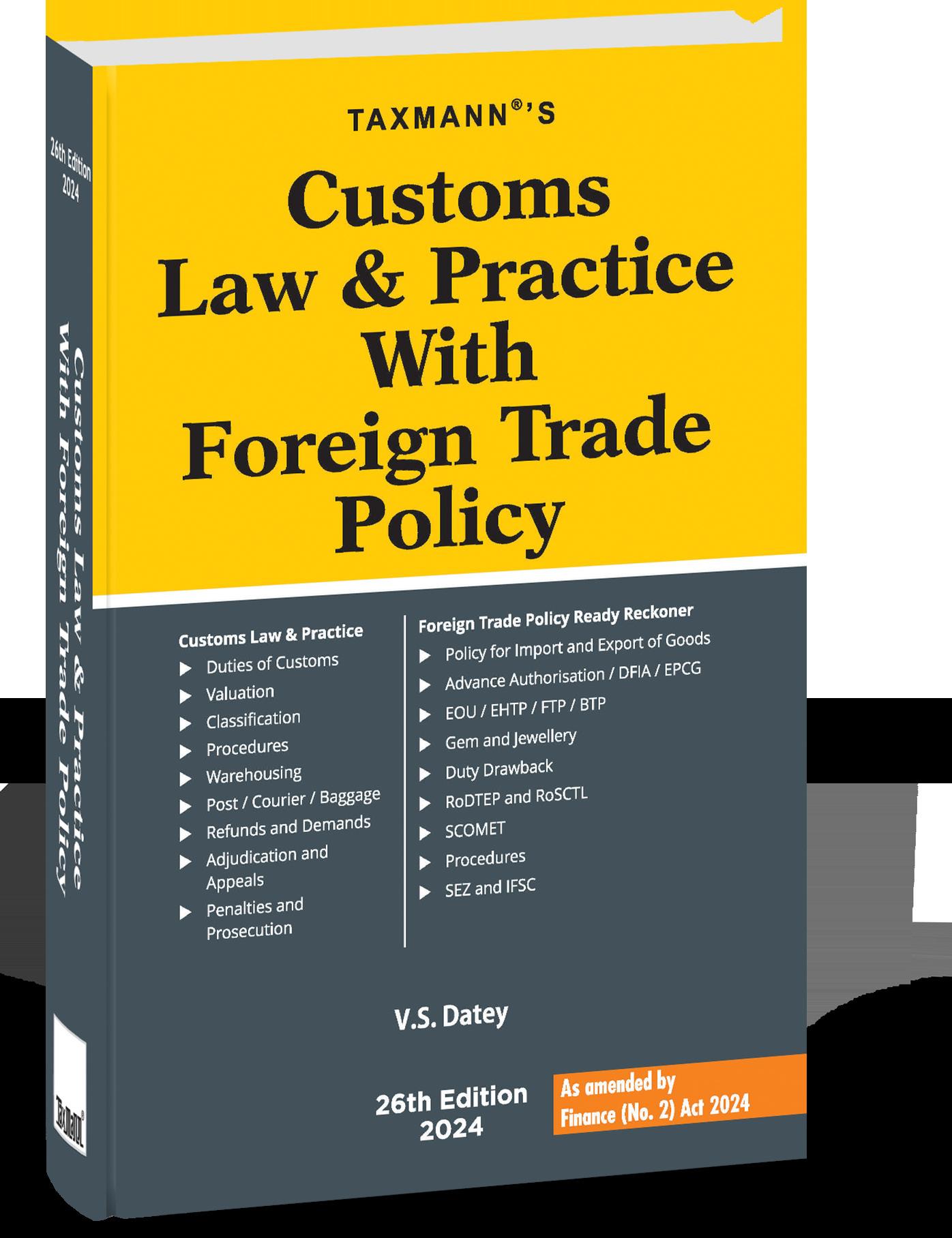 This book is helpful to customs professionals, customs house agents, legal practitioners, and businesses involved in international trade providing clear, accessible commentary and practical tools for understanding complex customs and trade regulations. The Present Publication is the 26th Edition and has been amended by the Finance (No. 2) Act 2024. This book is authored by V.S. Datey with the following noteworthy features: