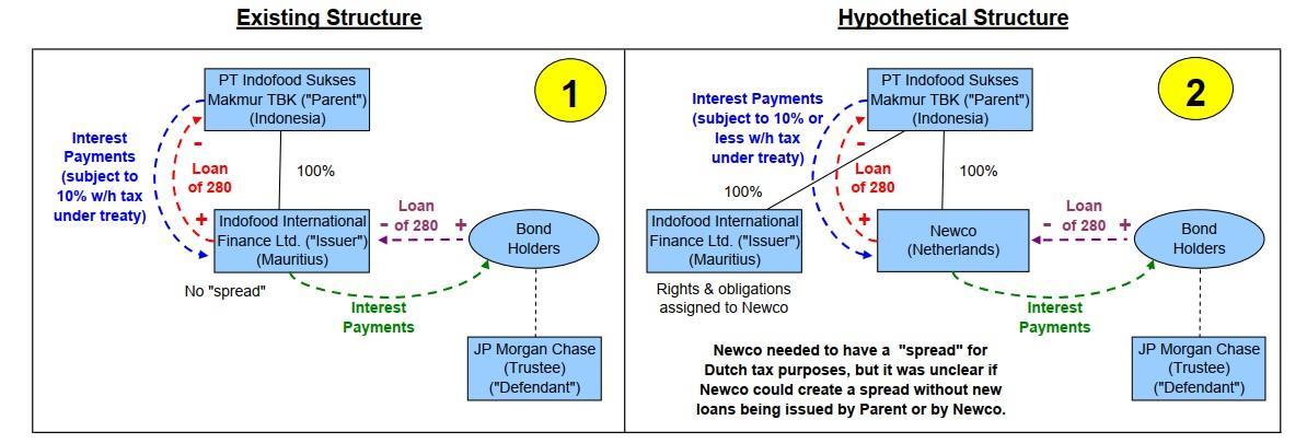 ► Subsequent to the issue of bonds, the Indonesian government terminated its DTAA with Mauritius and as a result, the withholding rate increased to 20% which was to be borne by the Indonesian company. When a proposal to set up a Netherlands company was brought up, the Indonesian tax authorities contented that it was the Indonesian company which was the ultimate beneficial owner and denied the application of Netherlands-Mauritius treaty.