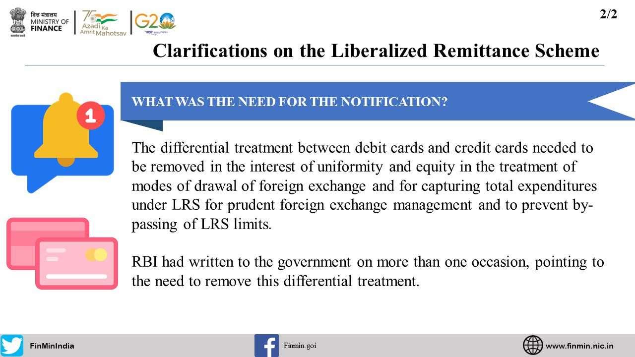 The said Rule 7 has now been omitted w.e.f. 16.5.2023, with a view to ensure uniformity and equity in the treatment of modes of drawl of foreign exchange and for capturing total expenditures under LRS for prudent foreign exchange management and to prevent by-passing of LRS limits.