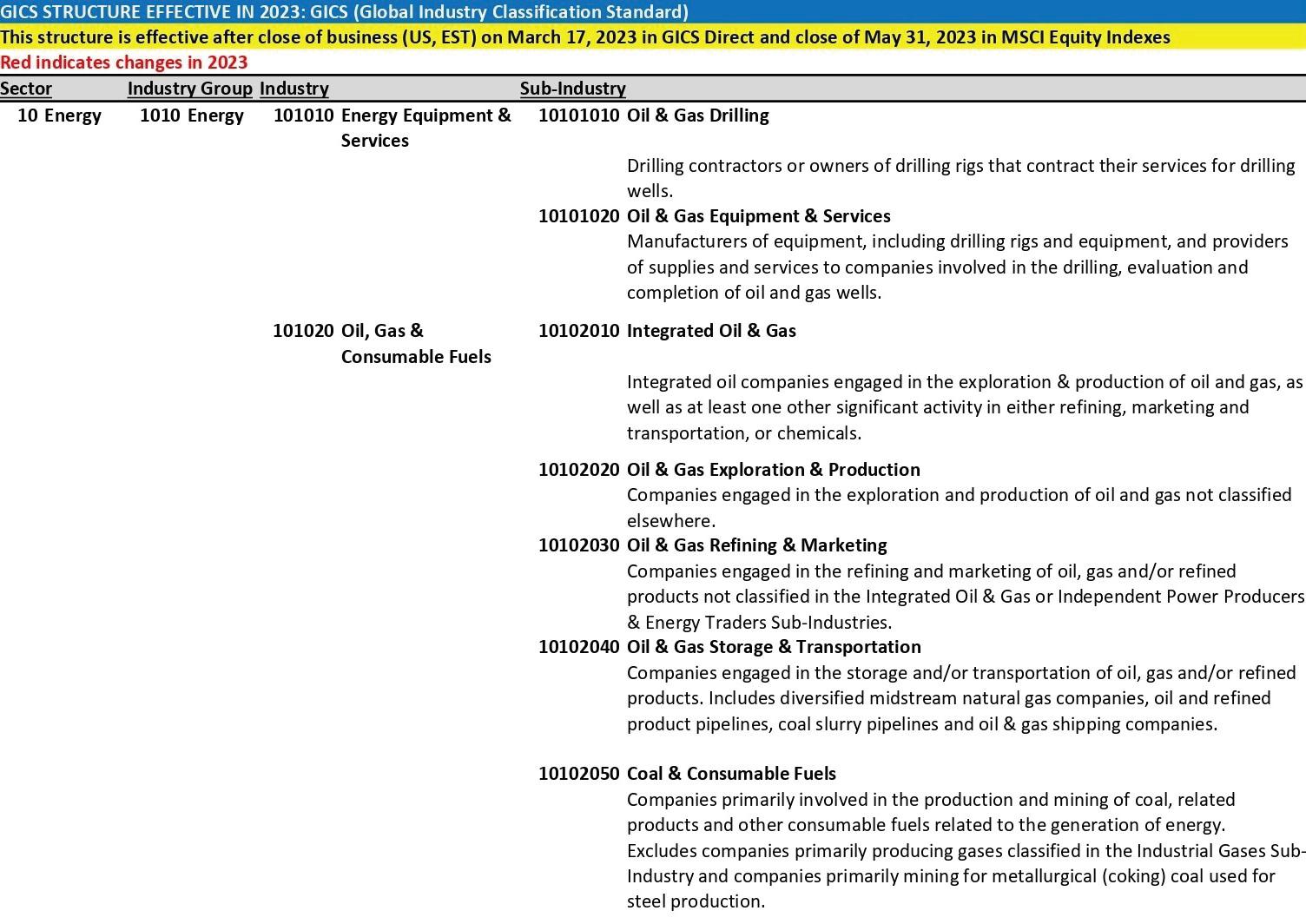 25 industry groups,74 industries and 163 sub-industries. An example for grouping for Energy sector is shown below for illustration purposes: