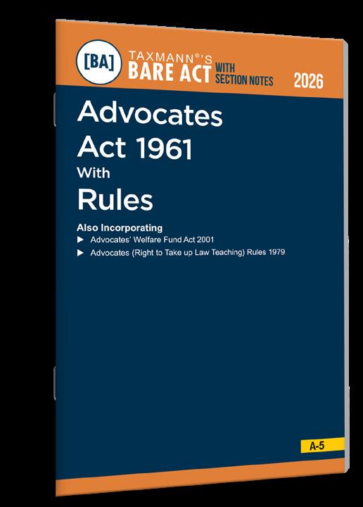 Advocates Act 1961 with Rules [Bare Act with Section Notes] by Taxmann is an authoritative and wellannotated statutory compilation of the Advocates Act 1961, along with its allied laws, rules, and regulatory instruments governing the legal profession in India. The publication presents the complete and amended statutory text of the Act, supported by concise, section-wise notes that explain legislative intent, statutory scope, procedural requirements, and practical implications. It offers a structured understanding of the legal framework governing Bar Councils, the enrolment and rights of advocates, professional conduct and discipline, and the regulatory oversight of legal practice in India. In addition to the principal Act, the book incorporates key supplementary legislations and rules, including the Advocates’ Welfare Fund Act 2001, the Advocates (Right to Take Up Law Teaching) Rules 1979, and the Bar Council of India Rules on Enrolment and Practice of Foreign Nationals 2025. Updated with the law as applicable to date, this 2026 Edition serves as a reliable statutory reference on the regulation and administration of the legal profession in India. This book is intended for the following audience: