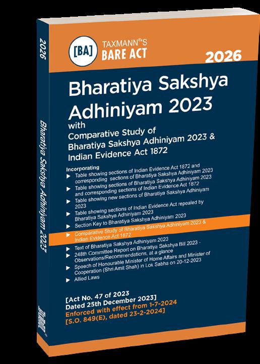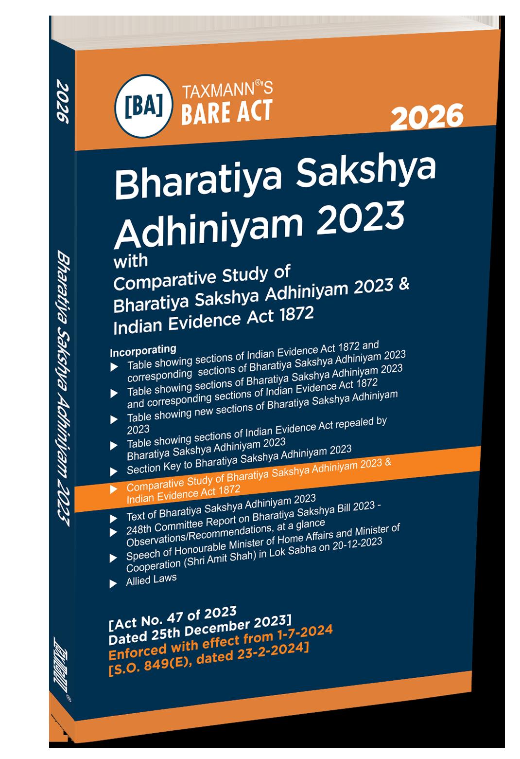 The Present Publication is the 2026 Edition, covering the amended and updated text of the Bharatiya Sakshya Adhiniyam [Act No. 47 of 2023], with the following noteworthy features: