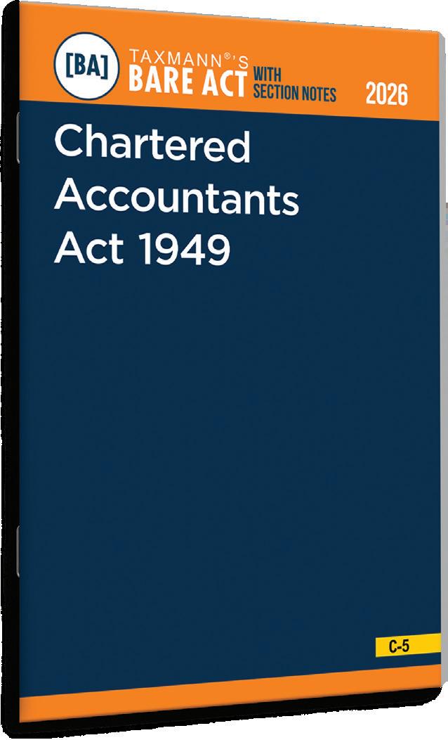 Chartered Accountants Act 1949 [Bare Act with Section Notes] by Taxmann is an authoritative statutory publication presenting the complete legal framework governing the regulation, development, and discipline of the chartered accountancy profession in India. The Act, which establishes and regulates the Institute of Chartered Accountants of India (ICAI), forms the foundation of professional standards, membership, practice rights, disciplinary control, and institutional governance of chartered accountants. This 2026 Edition reproduces the verbatim and unabridged text of the Chartered Accountants Act 1949, as amended up to date, and is supplemented with concise, section-wise explanatory notes. These Section Notes aid readers in understanding legislative intent, procedural requirements, compliance obligations, and the profession's evolving regulatory framework, while preserving the statutory character of a Bare Act. This book is intended for the following audience: