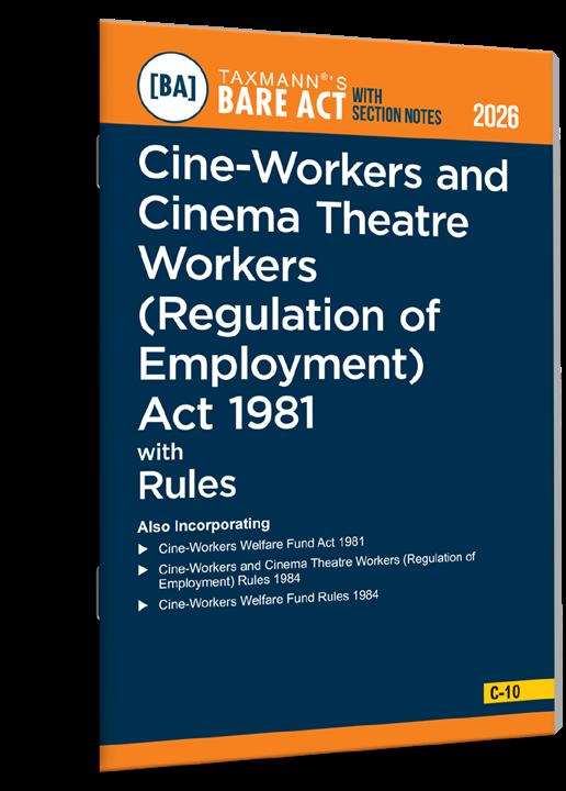 Cine-Workers and Cinema Theatre Workers (Regulation of Employment) Act 1981 with Rules [Bare Act with Section Notes] by Taxmann is a consolidated statutory reference on the legal framework. The publication reproduces the complete text of the principal Act along with the Rules made thereunder and is supported by concise section-wise notes to aid statutory interpretation and day-to-day compliance. It also incorporates the Cine-Workers Welfare Fund Act 1981, the Cine-Workers Welfare Fund Rules 1984, and the Cine-Workers and Cinema Theatre Workers (Regulation of Employment) Rules 1984, providing a single, integrated view of employment regulation and welfare administration applicable to the film production and cinema exhibition sectors.