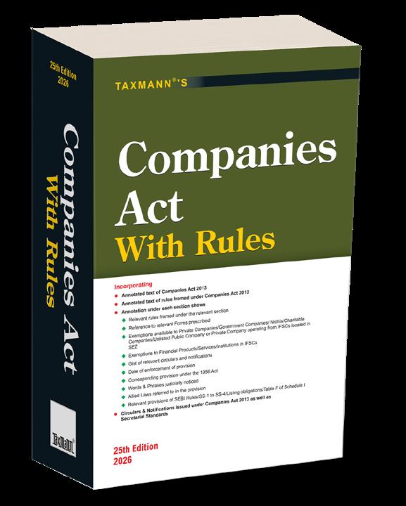 Companies Act with Rules is a comprehensive, single-volume statutory and compliance reference that presents the Companies Act 2013 as a fully operational legal framework. It integrates the complete text of the Act with the Rules framed thereunder, together with relevant circulars, notifications, Secretarial Standards, exemptions, and procedural guidance issued under the Act. The editorial approach is distinctly practical—each provision is placed within its regulatory and compliance context, enabling readers to understand not only the statutory text but also its application, compliance requirements, and enforcement in corporate practice.