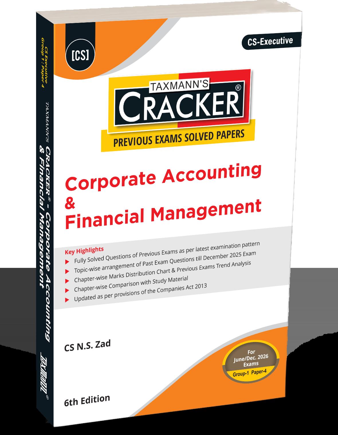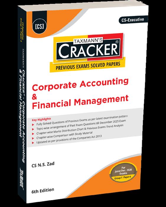 Corporate Accounting & Financial Management – CRACKER (Previous Exams Solved Papers) is an examfocused, data-driven preparation manual developed exclusively for CS Executive – Group 1 | Paper 4, applicable for the June and December 2026 examinations. The book converts nearly five examination cycles of CS Executive question data (up to December 2025) into a structured preparation and scoring framework. Each chapter, question, and solution is aligned with ICSI’s actual testing and evaluation methodology, enabling focused preparation based on examiner expectations rather than theoretical syllabus sequencing. Its core strength lies in integrating fully solved questions, marks analytics, trend analysis, and study material mapping, providing clarity on priority areas, the depth of answers, and scoring patterns.