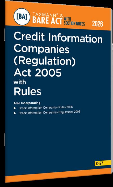 The Present Publication is the 2026 Edition, covering the amended and updated text of the Credit Information Companies (Regulation) Act [Act No. 30 of 2005] and Rules, with the following noteworthy features:
