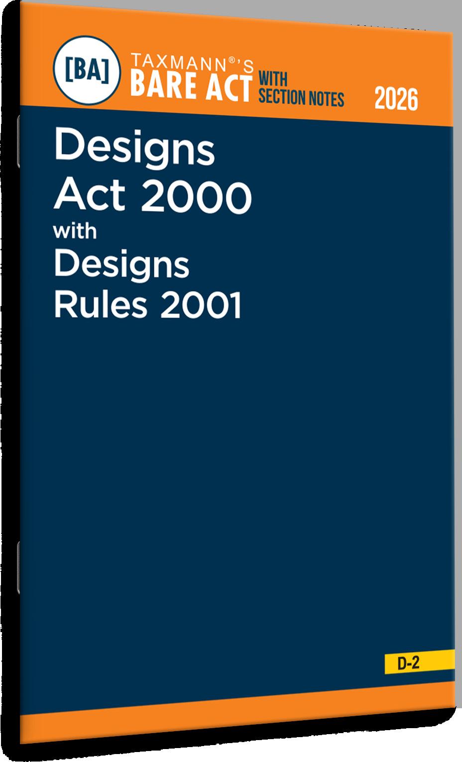 Designs Act 2000 with Design Rules 2001 [Bare Act with Section Notes] by Taxmann is a concise and authoritative statutory publication presenting the complete legal framework governing the protection, registration, and enforcement of industrial designs in India. This 2026 Edition consolidates the full text of the Act and the allied Rules, as amended up to date, and supplements the bare provisions with brief section-wise notes and practical guidance. The publication enables readers to understand clearly the statutory scheme relating to design registration, copyright in designs, cancellation, piracy, procedural safeguards, and the powers of the Controller of Designs, in line with contemporary developments such as digital filings, Locarno classification, and international reciprocity.