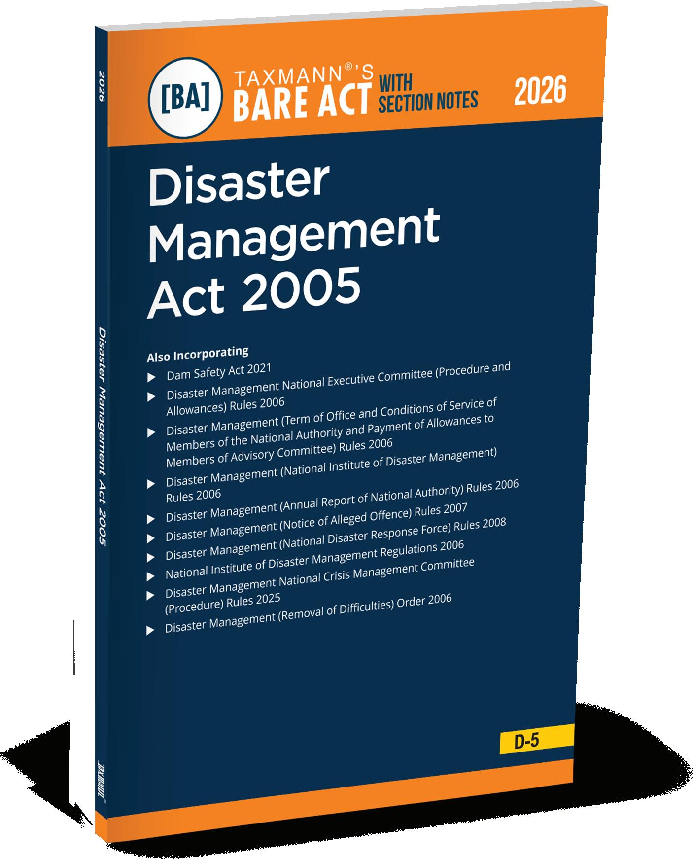 Disaster Management Act 2005 [Bare Act with Section Notes] by Taxmann is an authoritative statutory publication presenting India's core legal framework governing disaster prevention, mitigation, preparedness, response, recovery, and reconstruction. The Act establishes a coordinated, multi-tier disaster management system. It provides the statutory basis for national, state, district, and urban disaster management authorities, as well as enforceable emergency powers during disasters of national or regional importance. This 2026 Edition is updated to incorporate the Disaster Management (Amendment) Act 2025, reflecting the modern legal approach to disaster risk reduction, resilience, climate-linked risks, urban disaster governance, and structured recovery. The Bare Act is supplemented with precise section-wise explanatory notes to aid statutory interpretation and administrative application. This publication is essential for a wide range of professional, academic, and institutional users, including: