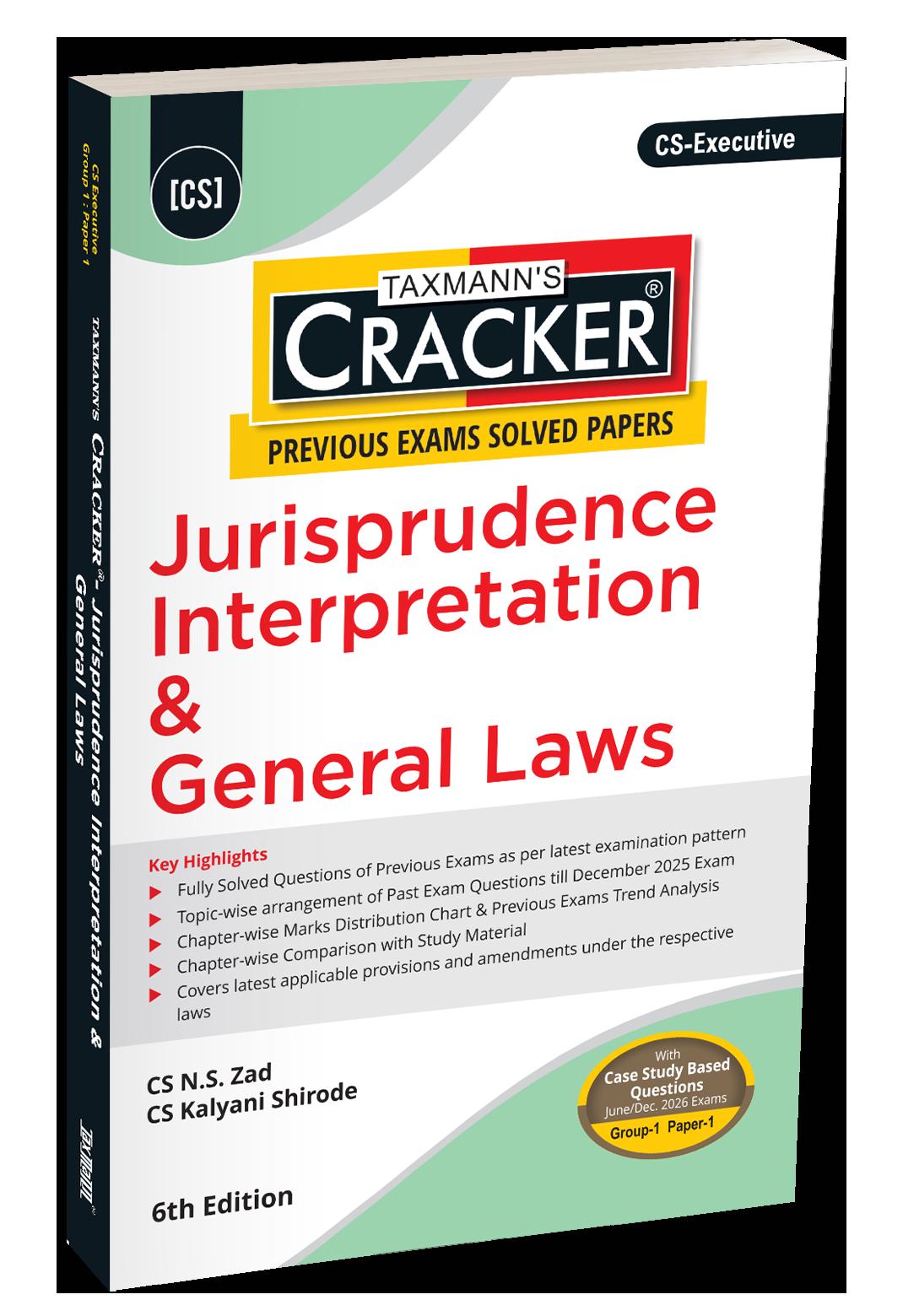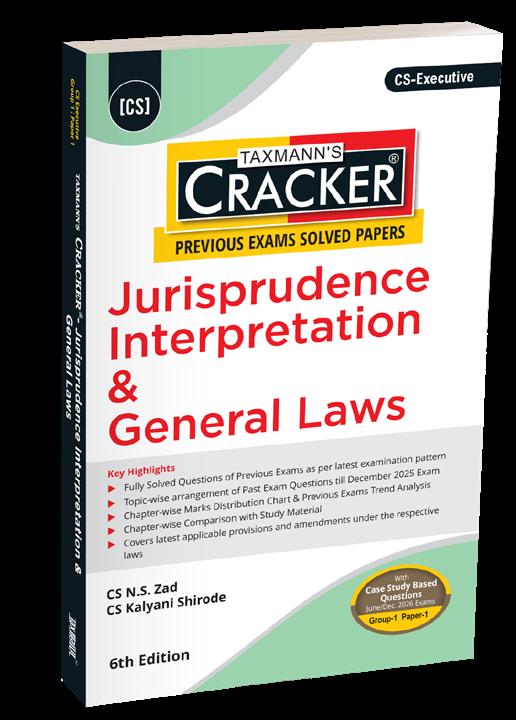 Jurisprudence, Interpretation & General Laws – CRACKER is an exam-intelligence-driven preparation manual for CS Executive – Group 1 | Paper 1, designed strictly around how the Institute of Company Secretaries of India (ICSI) sets, evaluates, and awards marks in this paper. The book treats the subject as an application-oriented discipline of legal reasoning, where success depends on issue identification, statutory interpretation, and the structured application of law, rather than on abstract legal theory. Reflecting the post-2023 examination framework, this Edition aligns with the dominance of case study–based, problem-oriented, and mixed descriptive-practical questions. Based on complete past examination coverage up to December 2025, the book converts historical exam patterns into predictive preparation tools, enabling focused, marks-optimised study.