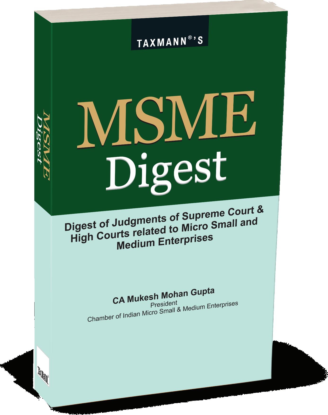 MSME Digest is a structured, practice-oriented judicial compendium that consolidates the evolving jurisprudence governing India's Micro, Small, and Medium Enterprises (MSME) sector. It brings together landmark decisions of the Hon'ble Supreme Court and various High Courts to provide a coherent and research-driven understanding of MSME law under the MSMED Act 2006. In a sector critical to GDP, employment, and exports, judicial interpretation has been central to safeguarding statutory protections—particularly in matters of delayed payments, statutory interest, the jurisdiction of Facilitation Councils, and the enforceability of awards. This Digest bridges the gap created by scattered case law by presenting a systematic consolidation of judicial principles, harmonising the MSMED Act with the Arbitration and Conciliation Act, 1996 and addressing overlaps with insolvency proceedings to ensure effective enforcement of MSME rights.