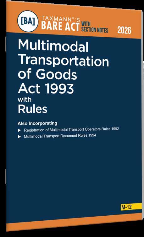 Multimodal Transportation of Goods Act 1993 with Rules [Bare Act with Section Notes] by Taxmann is a compact and authoritative statutory compilation that governs the regulation of multimodal transportation of goods from India to destinations outside India. The 2026 Edition presents the updated text of the Multimodal Transportation of Goods Act 1993, along with the Registration of Multimodal Transport Operators Rules 1992 and the Multimodal Transport Document Rules 1994, supplemented by concise section-wise notes for clarity and practical usability. This book is intended for the following audience: