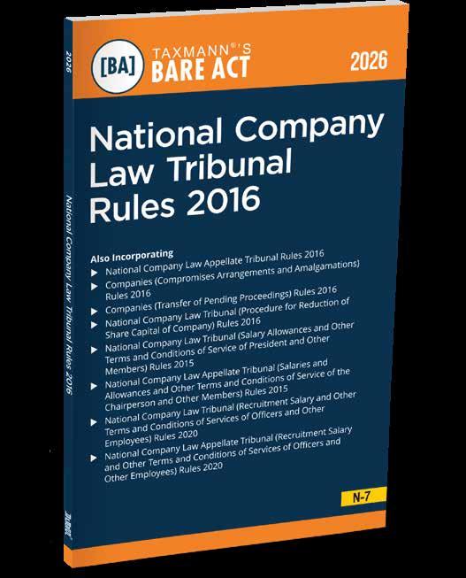 The Present Publication is the 2026 Edition, covering the amended and updated text of the National Company Law Tribunal Rules [GSR 716(E), dated 21-7-2016], with the following noteworthy features: