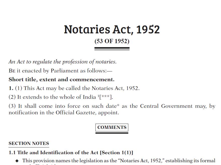 NOTARIES ACT 1952 WITH NOTARIES RULES 1956 – BARE ACT WITH SECTION NOTES