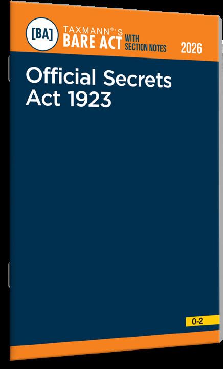 Official Secrets Act 1923 [ Bare Act with Section Notes ] by Taxmann is an authoritative statutory publication on India’s law governing official secrets, classified information, espionage, and related national security offences. The book presents the complete and updated text of the Act, supplemented with clear section-wise notes, practical commentary, and relevant judicial interpretation, enabling readers to understand both the letter and application of the law. This 2026 Edition is curated for accuracy, clarity, and practical utility, making it a dependable reference for matters concerning State secrecy and national security.