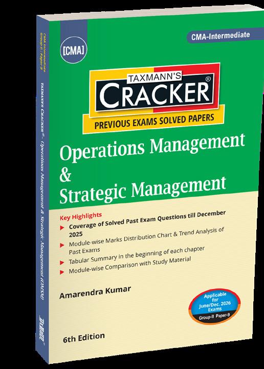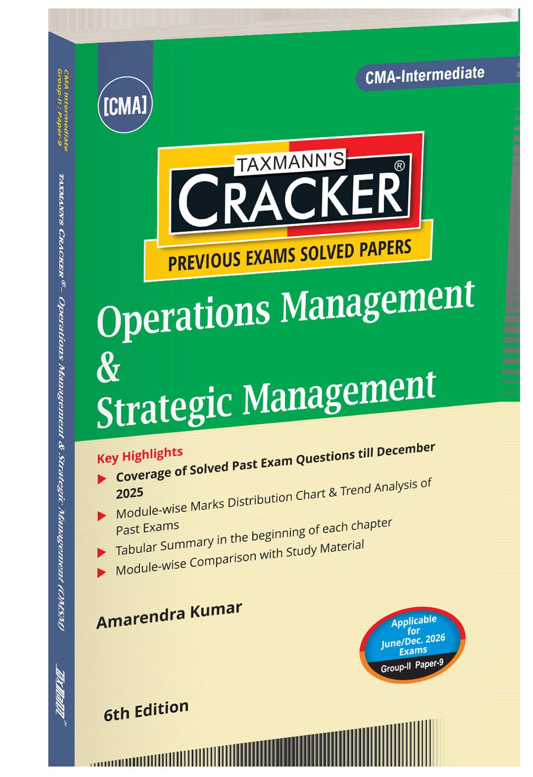 Operations Management & Strategic Management – CRACKER is a focused, examanalytics–driven preparation manual for CMA Intermediate – Group II | Paper 9, designed to convert syllabus knowledge into scoring performance. Instead of an isolated theory, the book analyses past CMA examinations under the New Syllabus, identifies recurring testing patterns, and presents fully solved exam questions aligned with ICMAI’s evaluation standards. This Edition (for June/Dec. 2026 Exams) integrates module-wise marks analytics (2023–2025), year-wise trend analysis, and precise mapping with CMA Study Material, enabling students to prioritise high-impact areas.