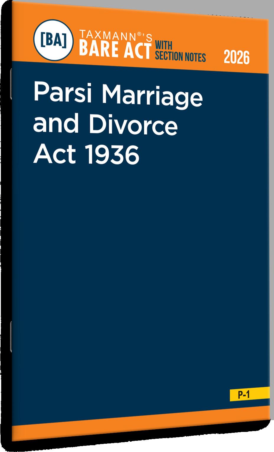 Parsi Marriage and Divorce Act 1936 [Bare Act with Section Notes] by Taxmann is an authoritative statutory guide on matrimonial law applicable to Parsis in India. Updated for the 2026 Edition, this publication presents the complete and amended text of the Act, supplemented with clear section-wise notes, expert editorial explanations, and selective references to leading judicial decisions. It is designed to facilitate practical understanding and application of the legal framework governing Parsi marriages, divorce, judicial separation, maintenance, child custody, and related matrimonial reliefs. This book is intended for the following audience:
