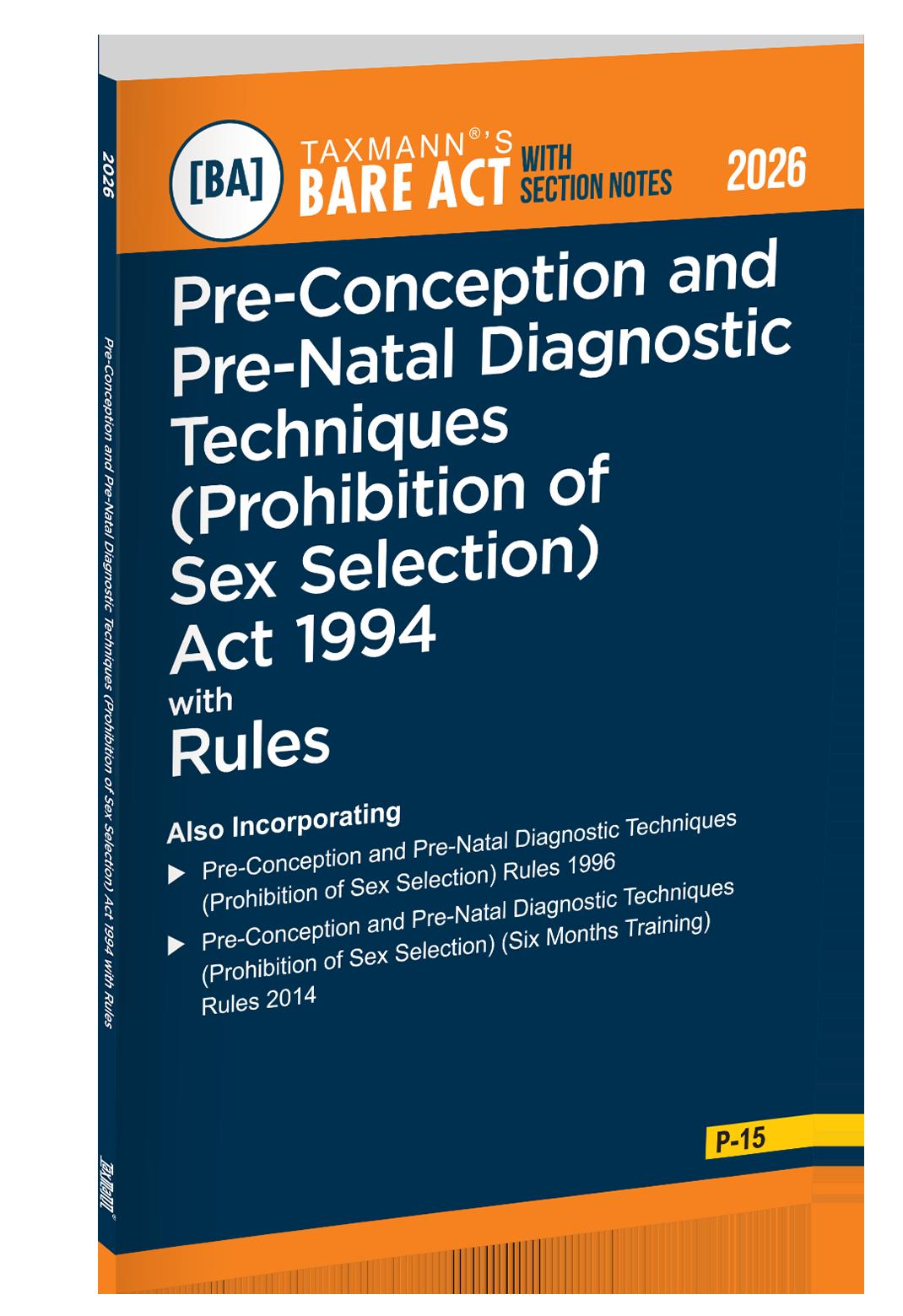 The Present Publication is the 2026 Edition, covering the amended and updated text of the Pre-Conception and Pre-Natal Diagnostic Techniques (Prohibition of Sex Selection) Act [Act No. 57 of 1994] and Rules, with the following noteworthy features: