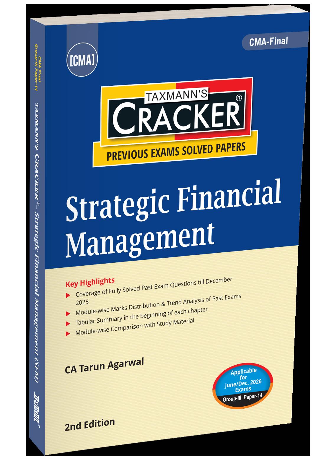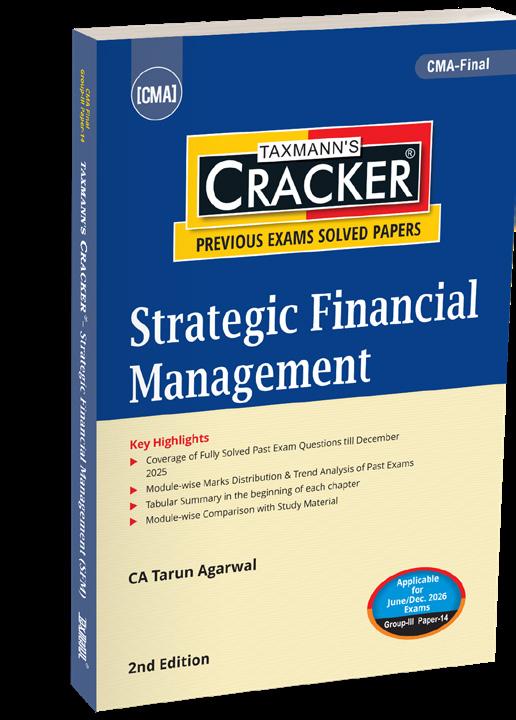 Strategic Financial Management – CRACKER is an exam-focused compilation of fully solved past examination questions for CMA Final – Group III | Paper 14, comprehensively updated to include questions up to December 2025. Designed as a high-impact revision and practice tool, the book helps students convert syllabus knowledge into exam-ready, scoring answers with proper structure, presentation, and strategic focus. In addition to solved questions, it integrates module-wise marks distribution, attempt-wise trend analysis, and mapping with the CMA Study Material, enabling students to prepare with clear insight into exam priorities and examiner expectations. The book thus serves as both a practice manual and a strategic preparation roadmap for CMA Final aspirants.