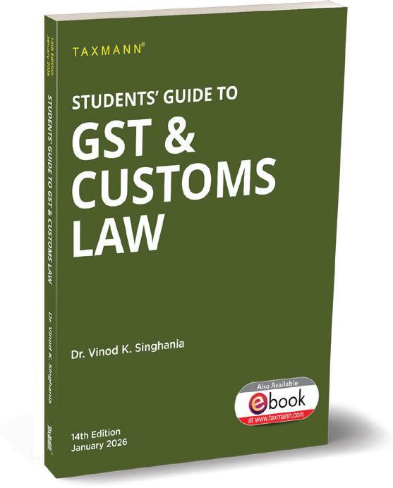 Students’ Guide to GST & Customs Law is a student-focused, application-oriented textbook that presents the Goods and Services Tax (GST) and Customs Law as an integrated, fully operational indirect tax system in India. The book re ects the mature phase of GST and the evolving customs law framework governing cross-border trade. It explains GST not merely as a statutory text, but as a practical compliance and economic system, with focused coverage of levy, classi cation, valuation, place and time of supply, exemptions, input tax credit, and compliance mechanisms. Customs Law is considered an equally important pillar of indirect taxation, with comprehensive coverage of customs duties, valuation rules, clearance procedures, baggage provisions, and exemptions. The book is designed to eliminate fragmented learning by o ering a single, consolidated resource that systematically moves from statutory concepts to analytical reasoning and practical application. Written on a teach-yourself methodology, it serves as a classroom textbook, self-study guide, and examination companion.