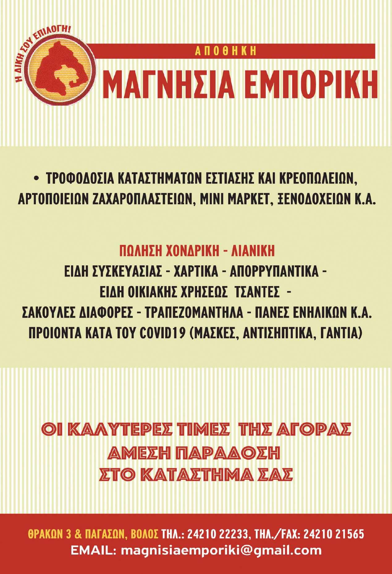 “Το 99% των επιχειρήσεων της Μαγνησίας, είναι μικρές επιχειρήσεις, που απασχολούν το 55% του εργατικού δυναμικού στον ιδιωτικό τομέα. Πολλές από αυτές, εξάγουν τα προϊόντα τους σε διάφορες χώρες του κόσμου. Τα τοπικά προϊόντα και οι ντόπιοι παραγωγοί αξίζουν τη στήριξή μας για την υψηλή ποιότητα, τις πρώτες ύλες, την μοναδικότητα και την καινοτομία τους. Δίπλα σε κάθε προϊόν υπάρχει πάντα ένα τοπικό. Ας το ψάξουμε. Θα εκπλαγούμε από τα ποιοτικά προϊόντα που παράγουμε. Απλά δεν είναι πολυδιαφημισμένα και δεν τα γνωρίζουμε.