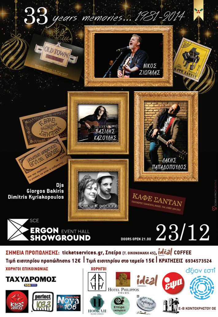 17:30: Είναι μέρα χαράς Από την ορχήστρα παιδιών της Babyland- το σχολείο της χαράς 18:00: Νύχτα Χριστουγέννων στην πόλη Από την Καμεράτα και το τμήμα φωνητικής του Ωδείου Παλάσκα ΠΕΖΟΔΡΟΜΟΣ (Κουμουνδούρου – Ερμού) 20:00 - 22:00 Μουσική σκηνή στην πόλη -SpiralIon σε μουσικές rock ΘΕΑΤΡΟ ΠΑΛΑΙΑΣ ΗΛΕΚΤΡΙΚΗΣ ΕΤΑΙΡΕΙΑΣ (Χατζηαργύρη – Ρήγα Φεραίου) 21:00: Μουσική παράσταση με τους Αντώνη Μιτζέλο– Έρρικα Πατρικίου ❆ 20/12 ΤΡΙΤΗ ΠΛΑΤΕΙΑ ΑΓΙΟΥ ΝΙΚΟΛΑΟΥ 17:30: Με τη φλόγα της καρδιάς Από την παιδική χορωδία της Κιβωτού του Κόσμου - Βόλου 18:00: Κάλαντα και τραγούδια