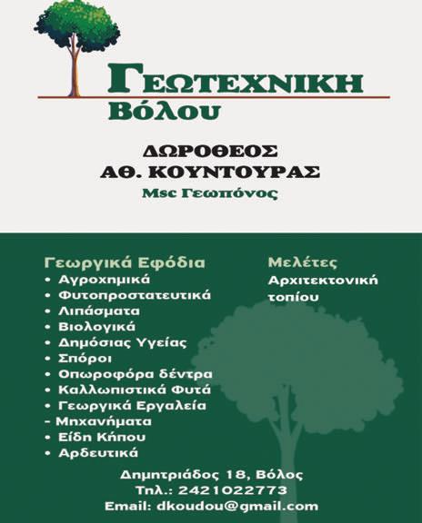 Προς επαγγελματίες γεωργούς – παραγωγούς, αλλά & προς ερασιτέχνες καλλιεργητές – παραγωγούς). Γράφει ο Θανάσης Κουντουράς, συν/χος Γεωπόνος, πρ. προόεδρος Γεωπονικού Συλλόγου Μαγνησίας ●Σελ. 14
