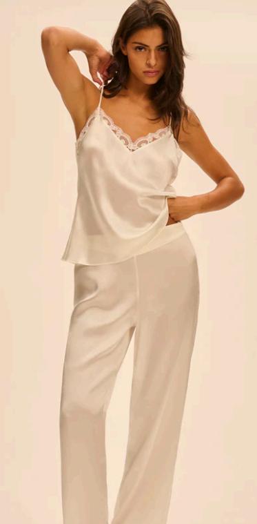 he“LoveMe”linestandsout—using100%silkforatruly luxuriousfeel.Itemsincludesilkcamisoles,chemises,longsleevenightshirts,nightshorts,pants,androbes. Thisrangeisidealforsomeonewhovaluessoftness, elegance,andtheclassic“silk-nightwear”experience.