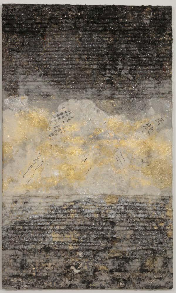 Each of these majestic compositions also conveys the artist’s conviction that preindustrial handmade paper is an embodiment of the traditional Japanese sense of harmony with nature alongside the down-toearth thrifty virtues of earlier times when paper was a valued commodity, rarely discarded and endlessly reused.