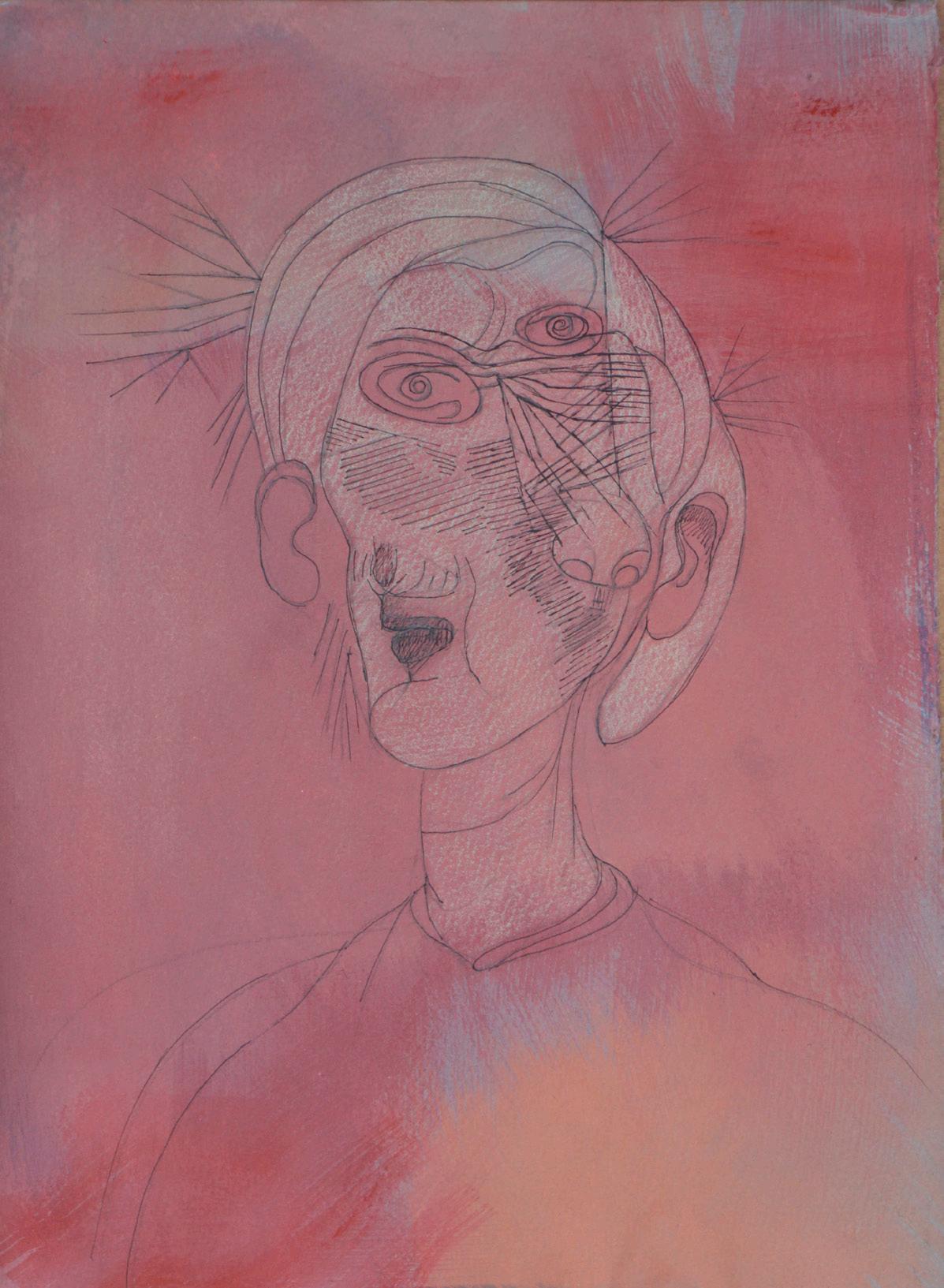 Pencil, oil and chalk on paper