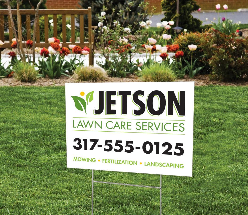24" x 18" Rectangle 4mm White corrugated plastic Digital full-color 2-sided yard sign with "H" stake Same art printed on both sides