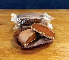 Buttery, melt-in-your-mouth caramels set over chopped pecans and covered in milk chocolate. Papered and wrapped individually. 1 per package.