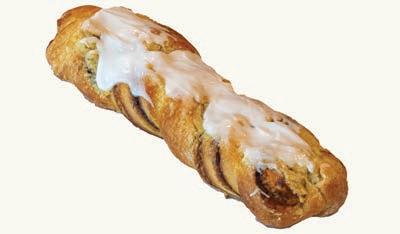 Danish dough swirled with cinnamon, filled with cream cheese, and topped with white icing.