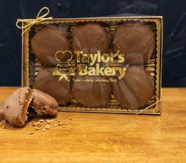Buttery, melt-in-your-mouth caramels set over chopped pecans and covered in milk chocolate. 6 per package.