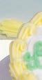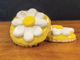 A 4” round fluted butter cookie that’s glazed, then decorated with cream icing. Decorations vary by season.